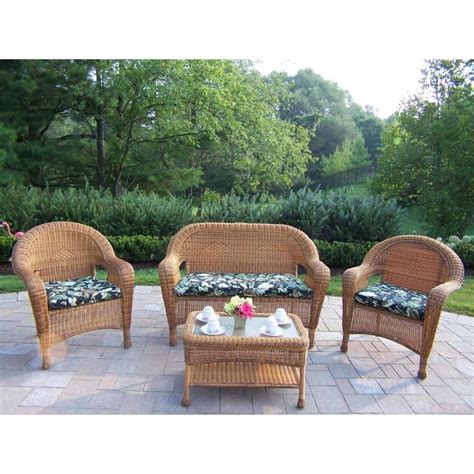 - The four piece wicker patio set is a stylish and comfortable outdoor seating option.